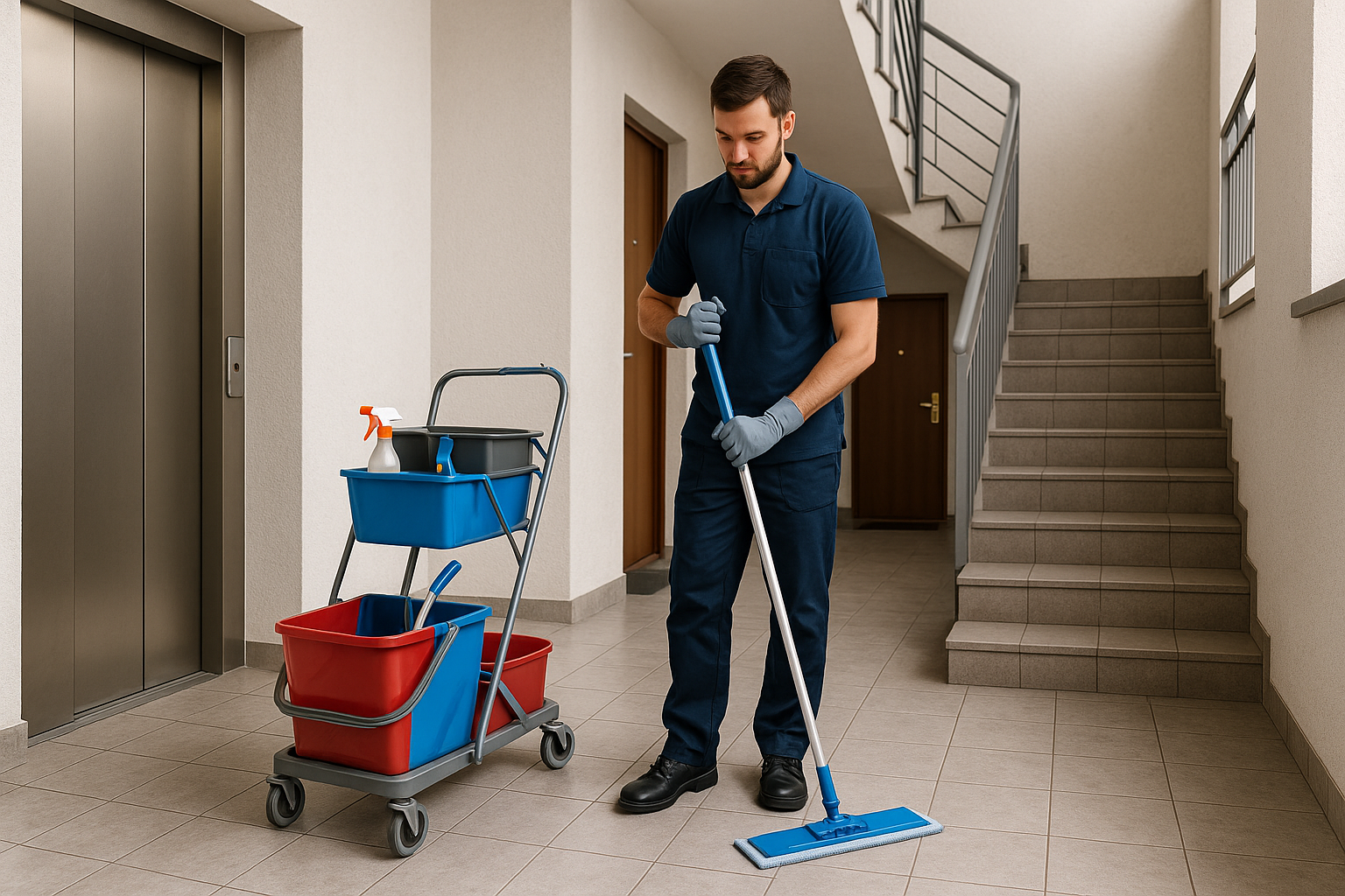 - Lavage des sols : aspiration, nettoyage manuel ou mécanisé selon la nature du sol.